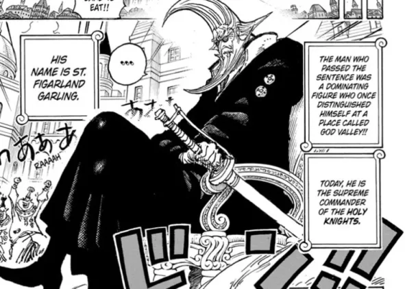 Kelompok Kesatria Dewa atau God Knight yang baru diperkenalkan ini belum banyak dibahas dalam cerita, tapi sekarang adalah waktu yang tepat bagi mereka untuk terlibat, terutama karena cerita One Piece sedang menuju perang besar terakhir. Dengan Figarland yang sudah bergabung dengan 5 Tetua, dan Naga Langit yang tertekan karena blokade Tentara Revolusioner, ini adalah saat yang sempurna bagi para pelindung Naga Langit untuk bertindak. Selain pemimpinnya, belum ada karakter lain dari kelompok ini yang diketahui, namun kekuatan mereka sudah mulai diperlihatkan, dan pertarungan mereka dengan musuh pasti sangat dinantikan.